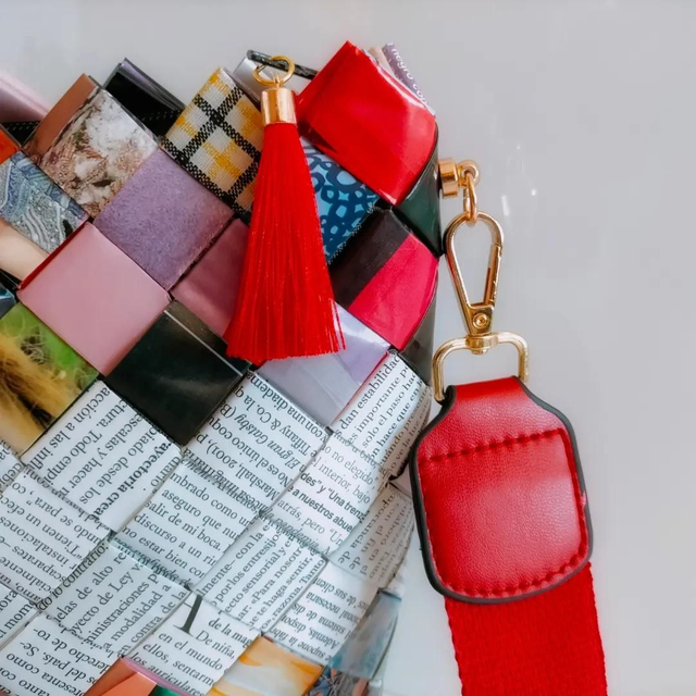 Mucho más que un complemento, tu bolso es un aliado fiel que te acompaña a todas partes y aporta un toque especial a tu look. Tal vez os preguntáis si con la lluvia hay riego de que el bolso se estropee. La respuesta es no, porque el papel es recubierto con un forro adhesivo no tóxico que lo hace resistente al agua. Dos versiones, todo en revista o revista con texto . doble correa y cadena. Con esta iniciativa , contribuimos a la reducción de residuos y al ahorro de recursos. Medidas: 23 cm alto x 32 de ancho y 8cm de base. El plazo de entrega es de 7 días hábiles, ya que se personaliza para cada cliente. Limpieza. Pasar un trapo húmedo y luego secar.